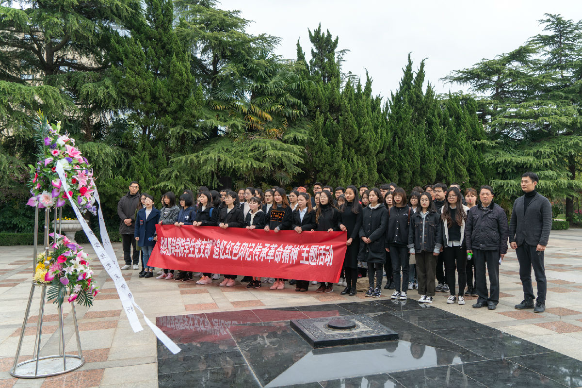 4月10日下午,学院学生党支部学生党员及入党积极分子代表60余人赴南通革命烈士陵园开展“追寻红色印记传承革命精神”主题党日活动。