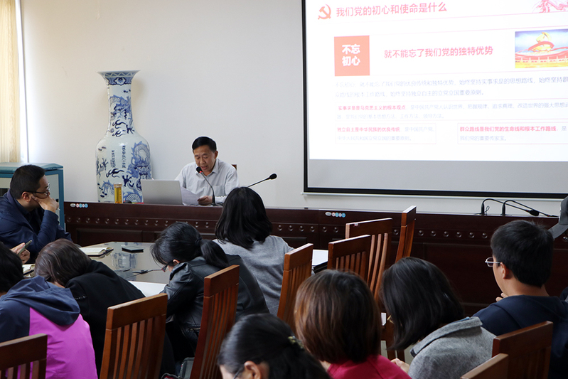 10月23日,学院党委书记石玉军为全院教职工党员讲授“不忘初心、牢记使命——做新时代合格党员”专题党课。