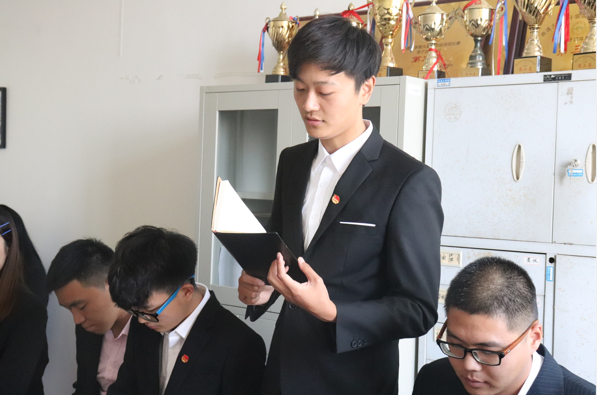 潘峰老师向大家阐释了举行此次学习活动的目的和意义,并与大家探讨了当代学生干部所应具备的品质。并要求大家在进行学习时,不要留于表面,要真正学习领会习近平新时代中国特色社会主义思想以及十九大精神的内涵。