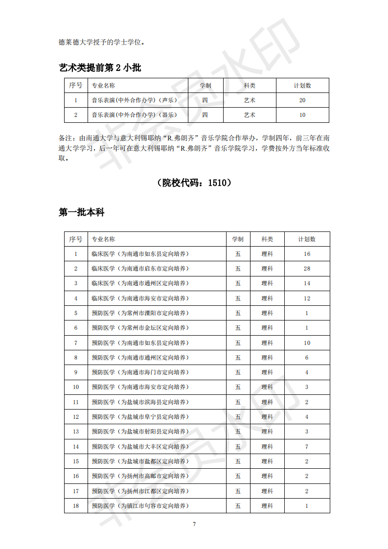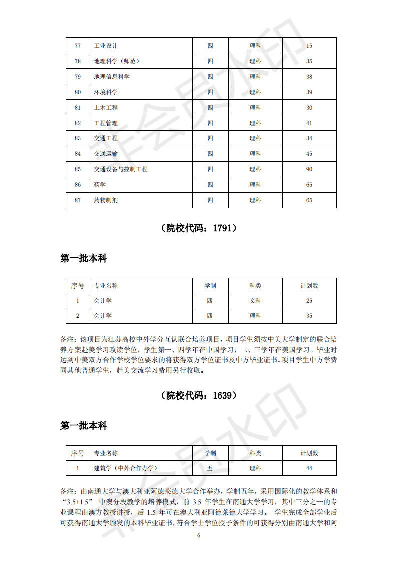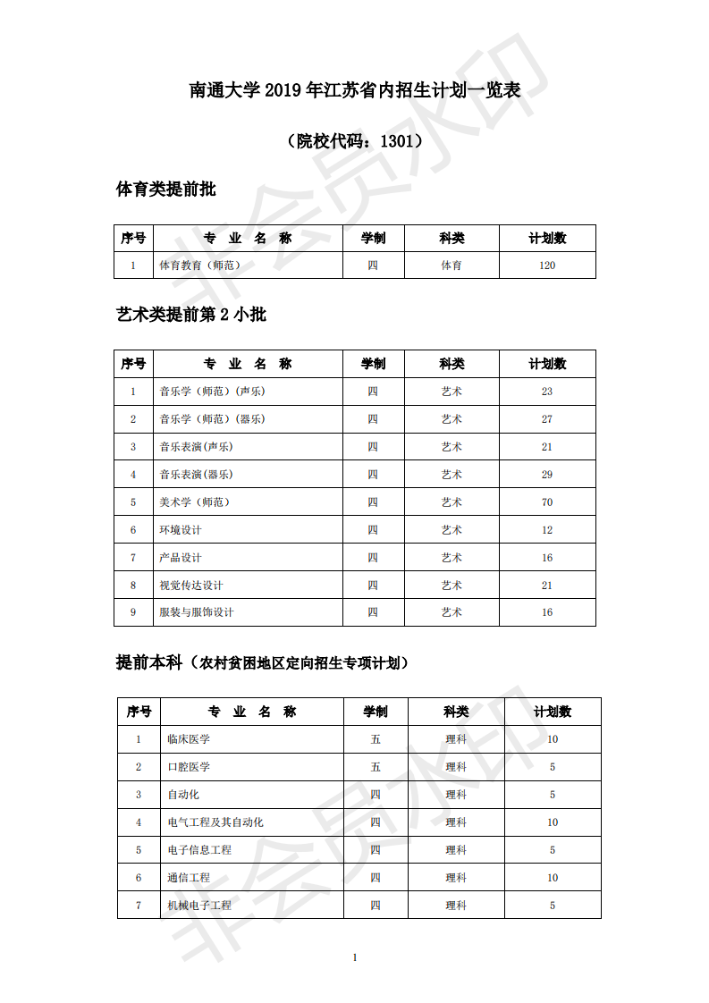 南通大学2019年江苏省内招生计划一览表