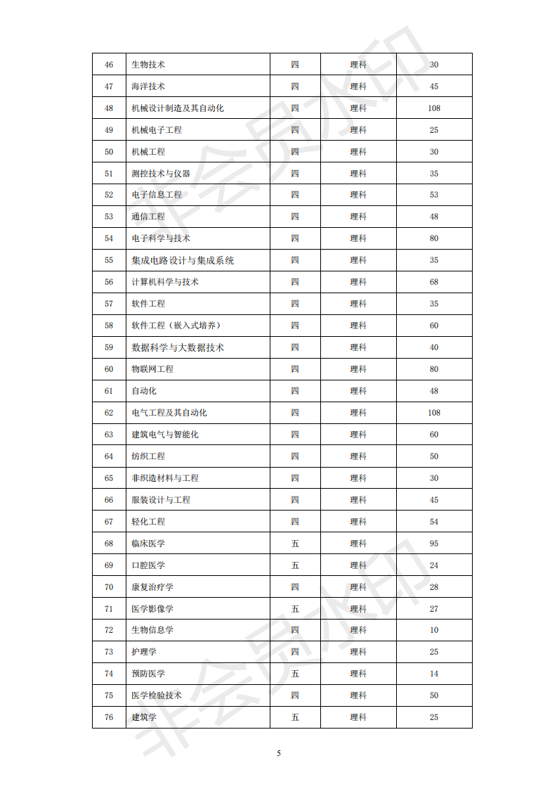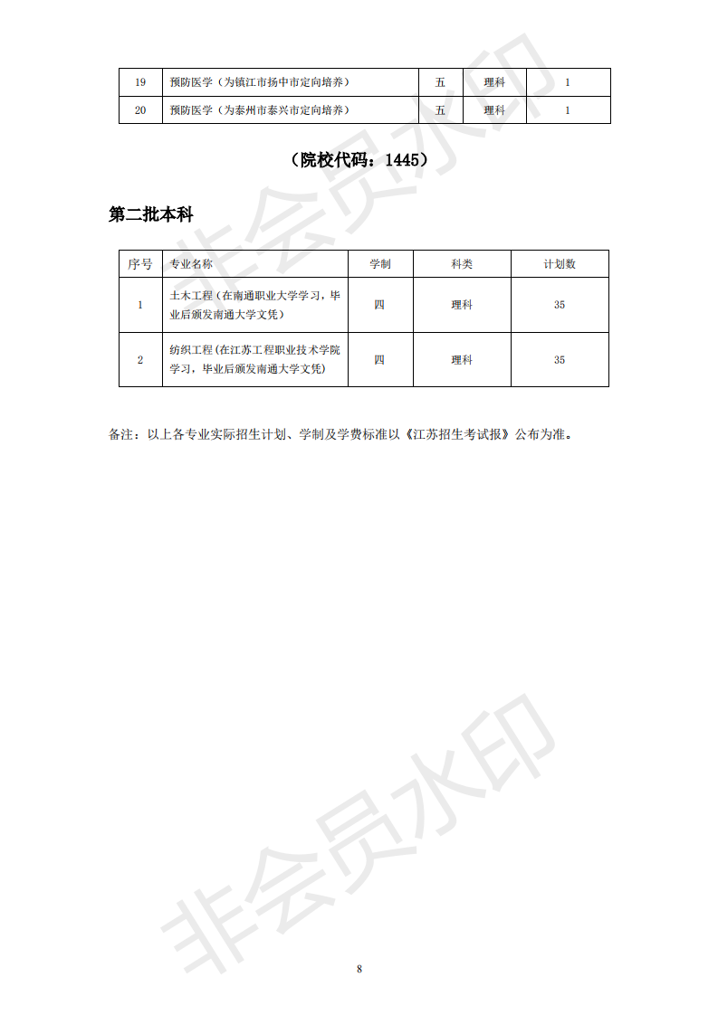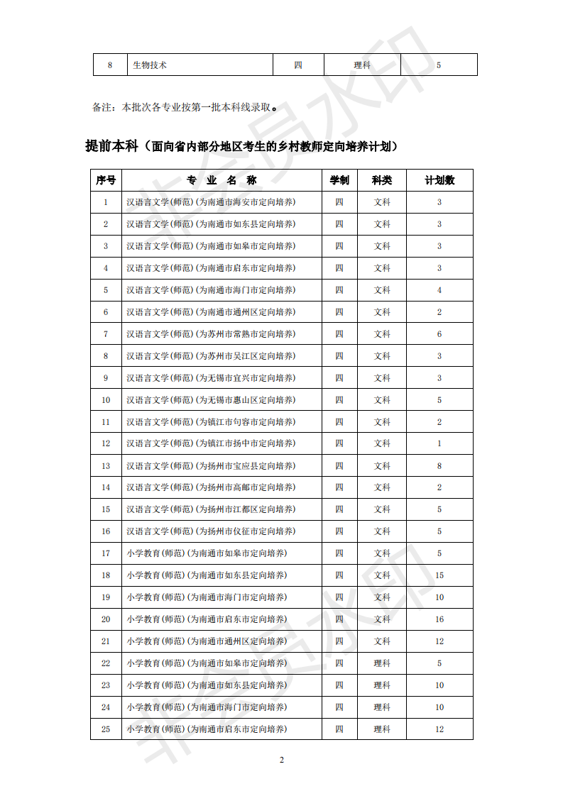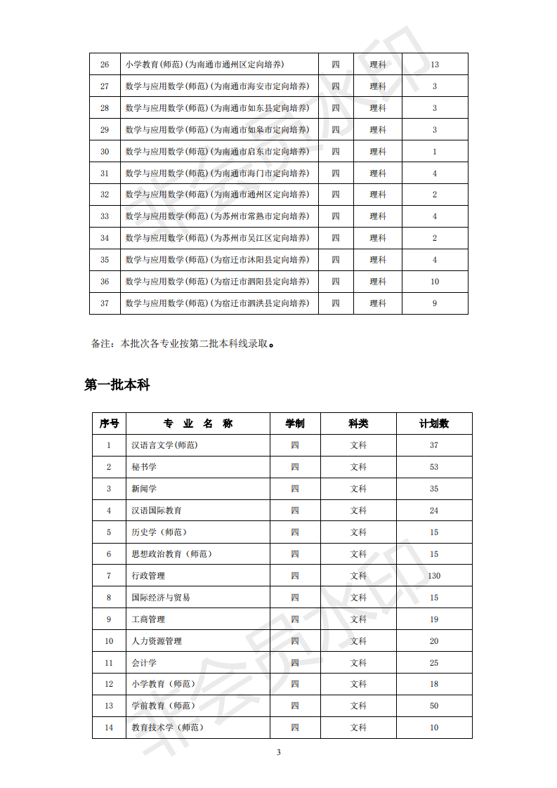 南通大学2019年江苏省内招生计划一览表