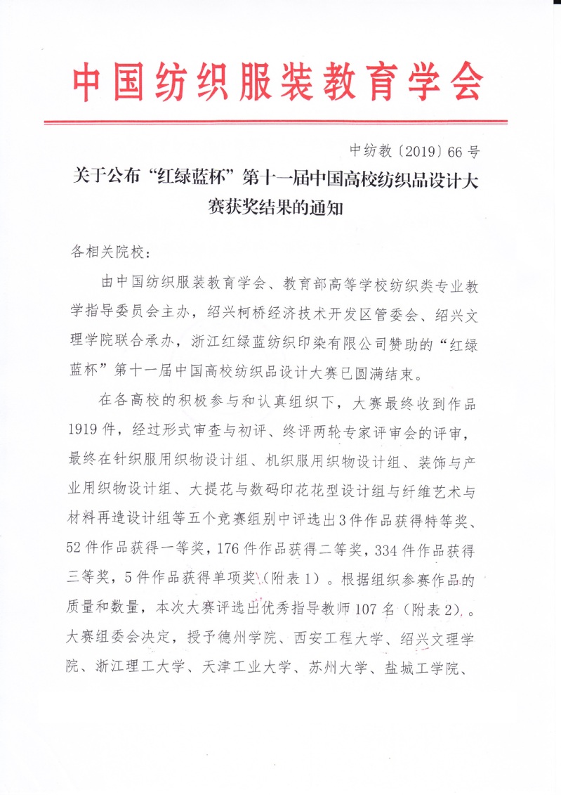 关于公布“红绿蓝杯”第十一届中国高校纺织品设计大赛结果的通知
