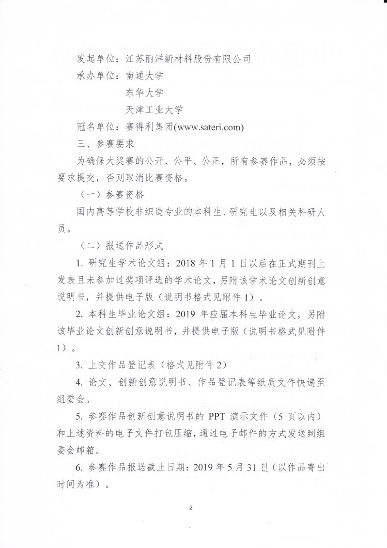关于举办第二届“赛得利杯”全国高等学校非织造材料与应用创新创意论文大赛的通知