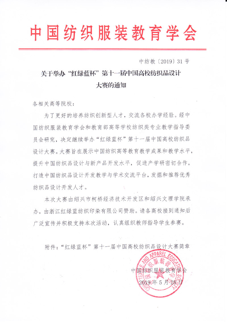关于举办“红绿蓝杯”第十一届中国高校纺织品设计大赛的通知