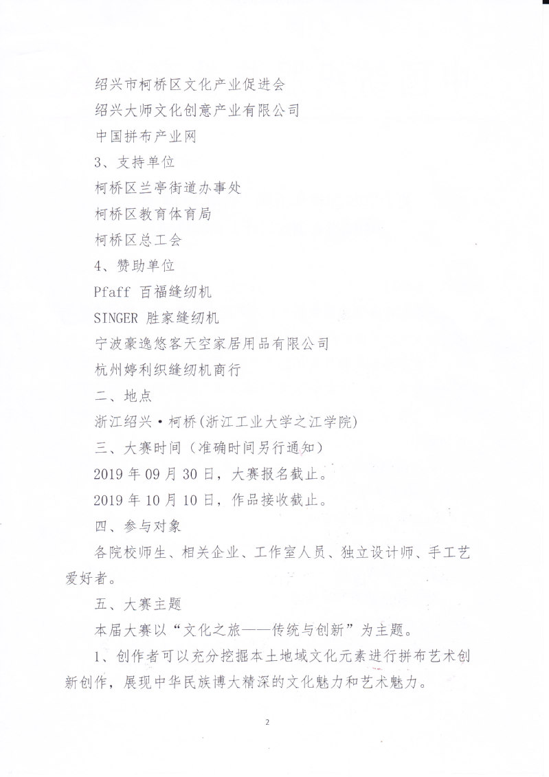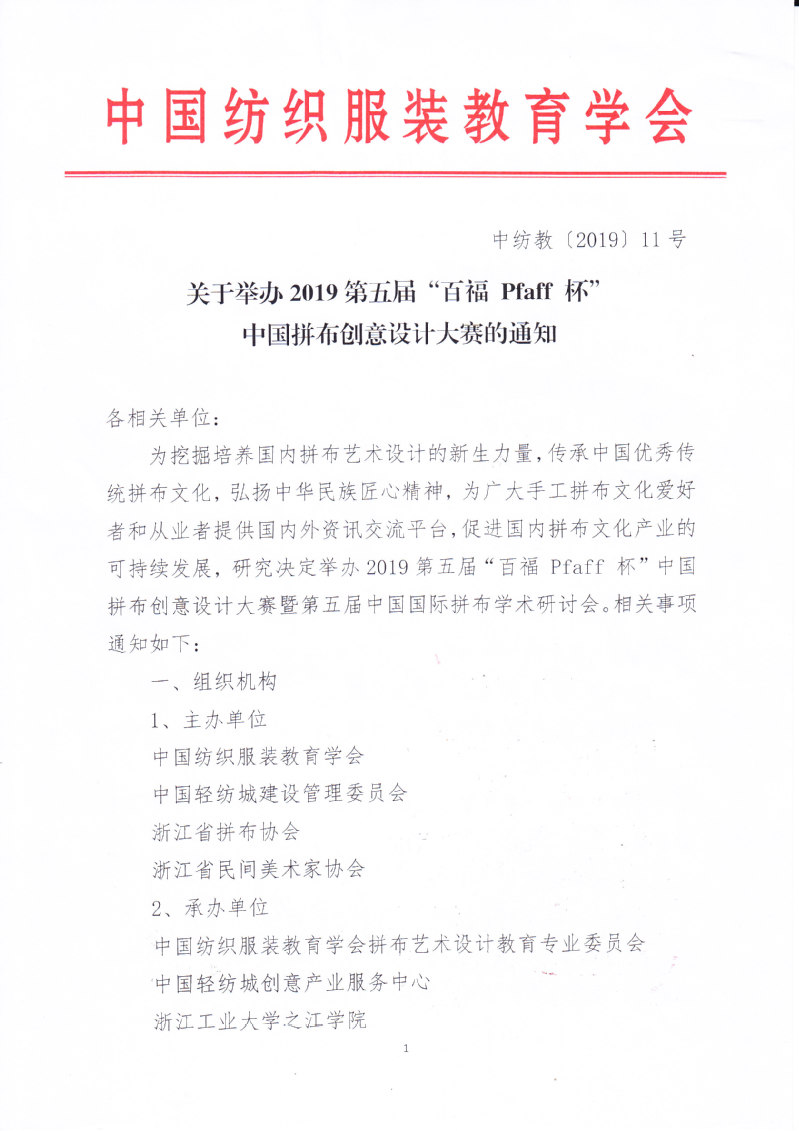 关于举办2019第五届“百福 Pfaff 杯”中国拼布创意设计大赛的通知