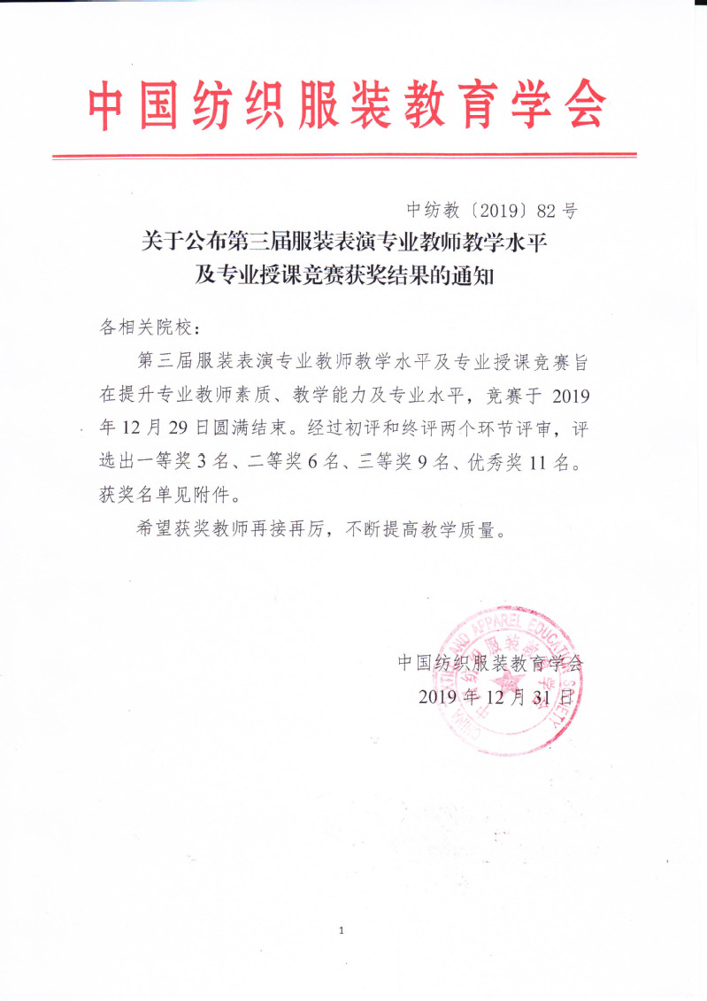 关于公布第三届服装表演专业教师教学水平及专业授课竞赛获奖结果的通知