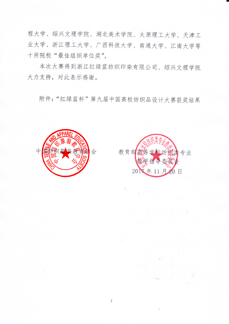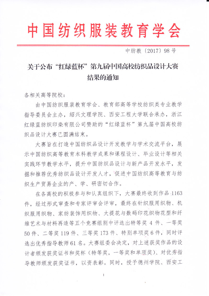 关于公布“红绿蓝杯”第九届中国高校纺织品设计大赛结果的通知