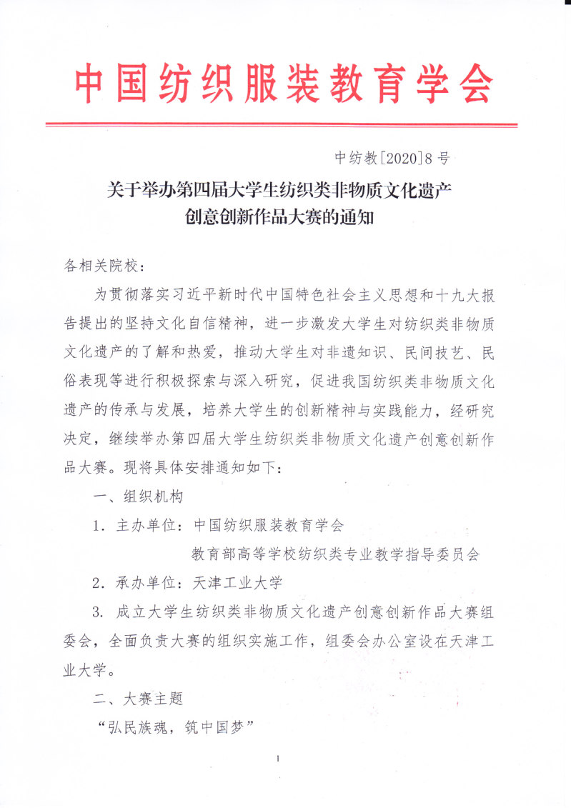 关于举办第四届大学生纺织类非物质文化遗产创意创新作品大赛的通知