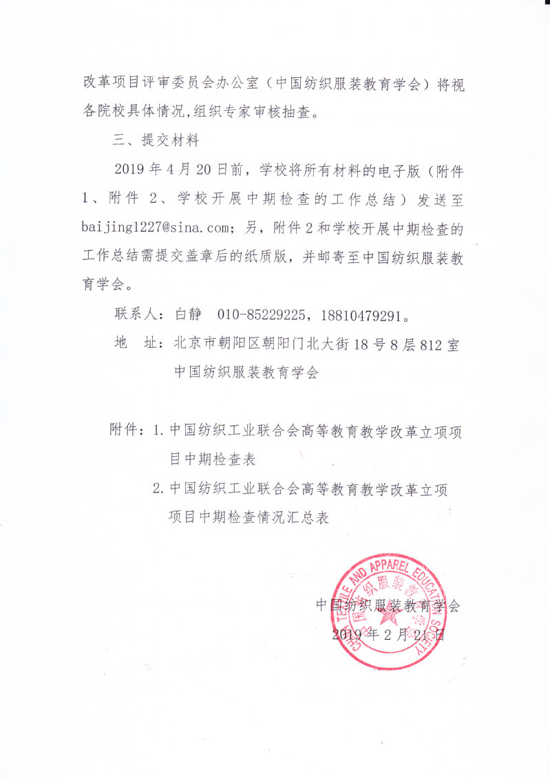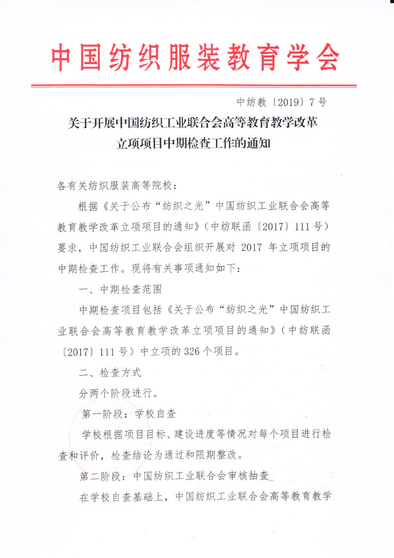 关于开展中国纺织工业联合会高等教育教学改革立项项目中期检查工作的通知