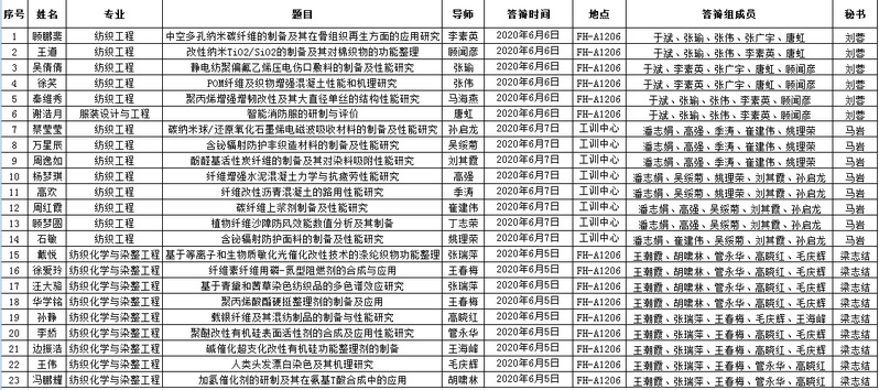 纺织服装学院2017级研究生答辩安排表