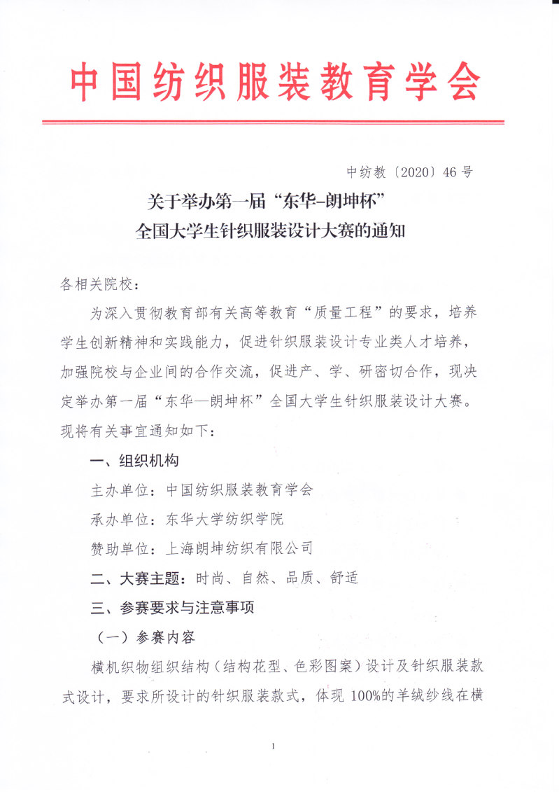 关于举办第一届“东华-朗坤杯”全国大学生针织服装设计大赛的通知