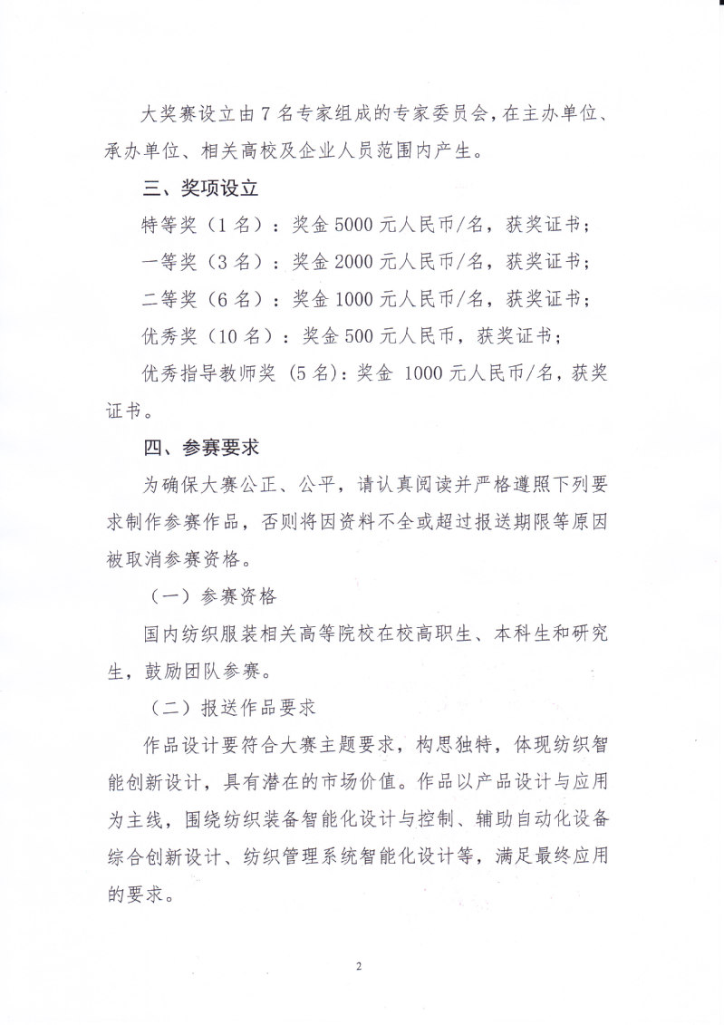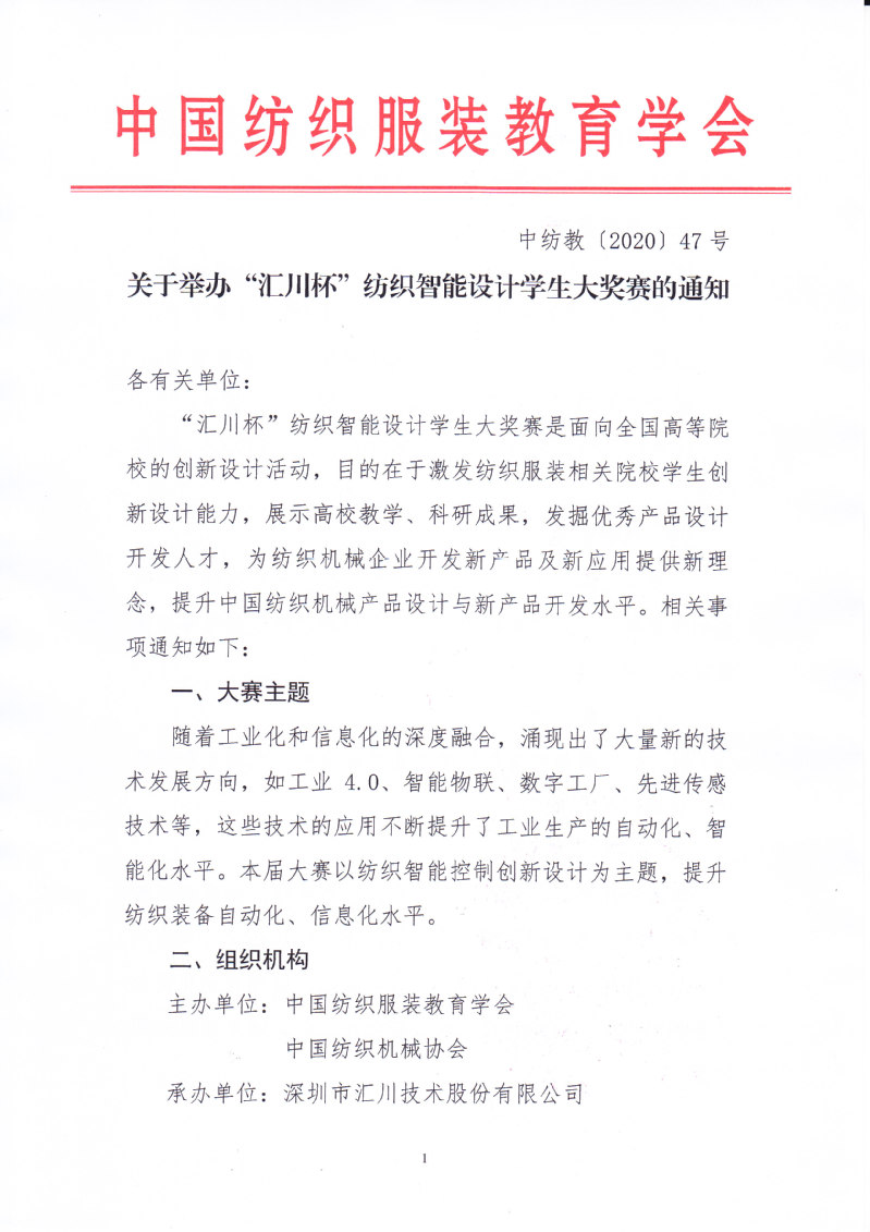 关于举办“汇川杯”纺织智能设计学生大奖赛的通知