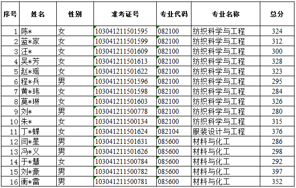 南通大学纺织服装学院2021年硕士研究生复试考生名单(一志愿)