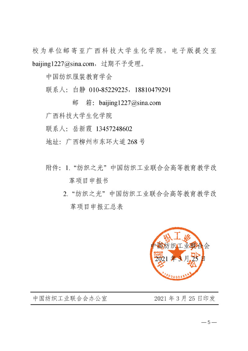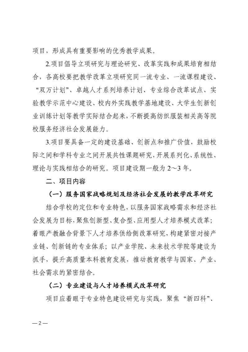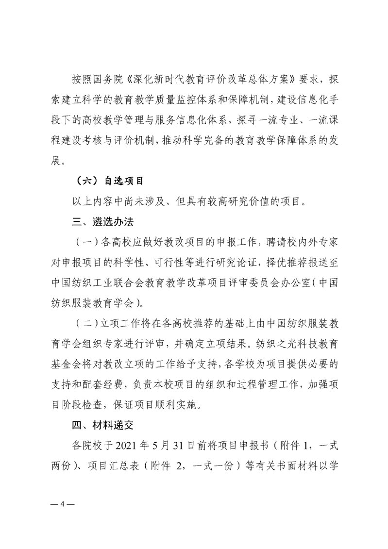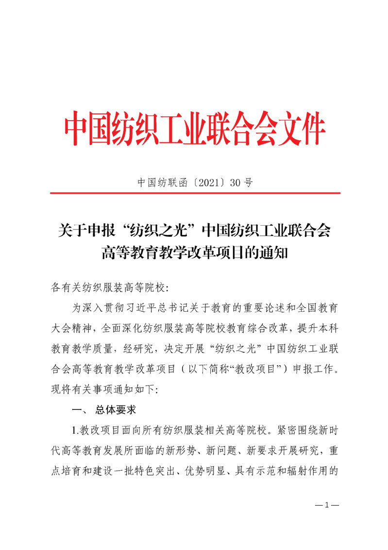 关于申报“纺织之光”中国纺织工业联合会高等教育教学改革项目的通知