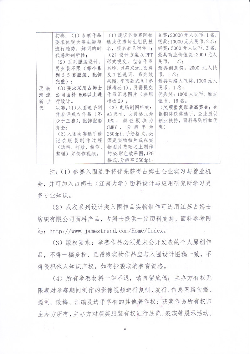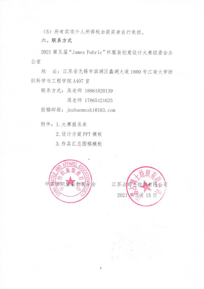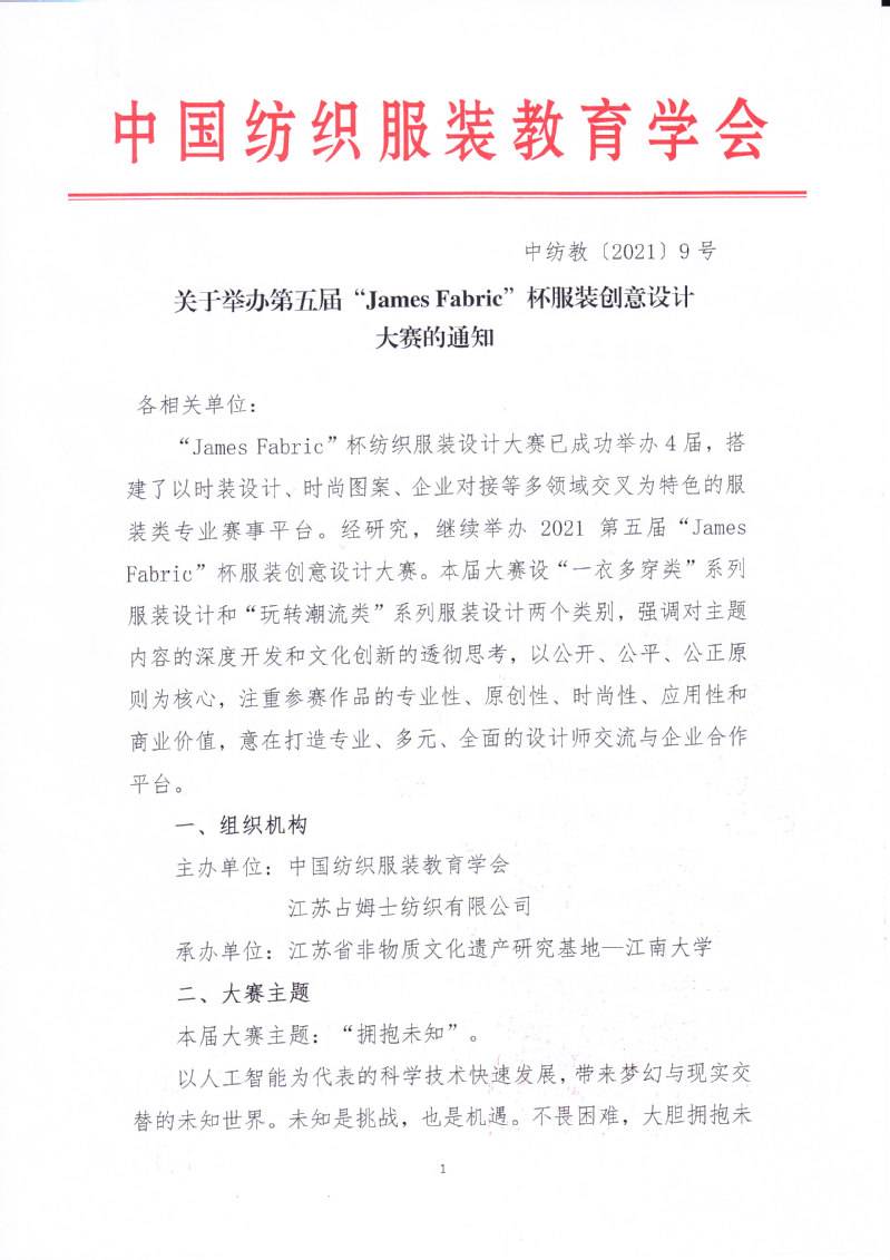 关于举办第五届“James Fabric”杯服装创意设计大赛的通知
