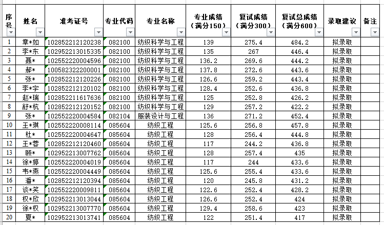 南通大学纺织服装学院2022年硕士研究生拟录取名单(调剂)