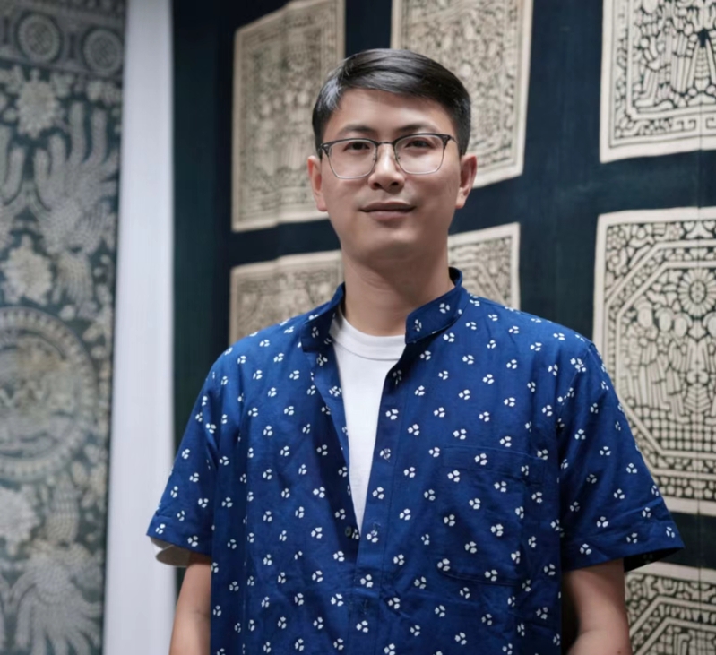 倪沈键,男,1987年生,正高级工艺美术师,硕士生导师,中国民间文艺家协会会员、中国染织艺术研究中心学术委员会副主任、南通市民间文艺家协会副秘书长。长期从事传统手工印染技艺的研究与实践,先后出版蓝印花布专著5部,参与国家级、省部级项目5项,主持江苏艺术基金项目1项。被评为全国非遗进校园十大优秀传承人、江苏省传统技艺技能大师、江苏省技术能手、江苏省青年岗位能手、南通市江海英才第二层次培养对象、南通青年五四奖章。
