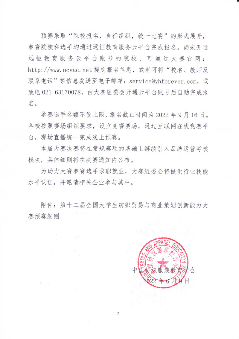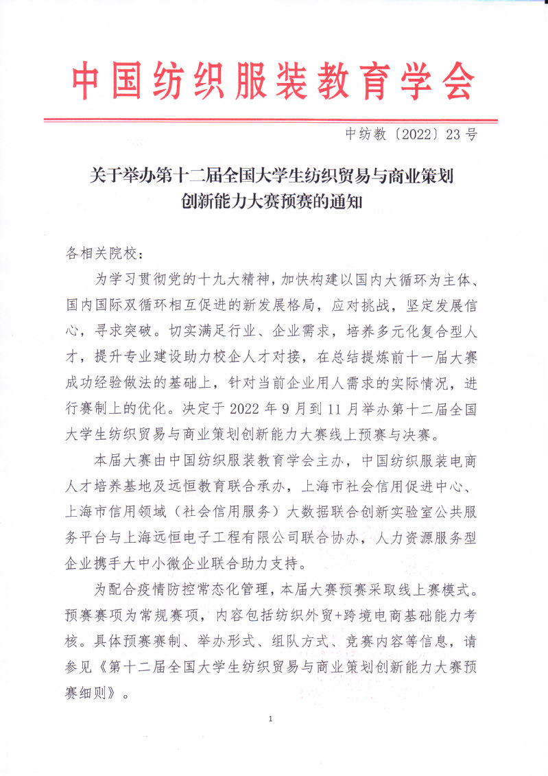 关于举办第十二届全国大学生纺织贸易与商业策划创新能力大赛预赛的通知