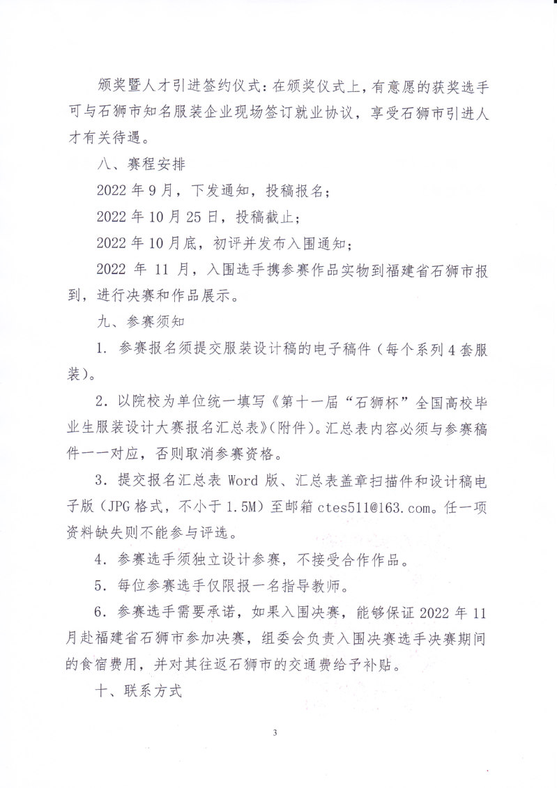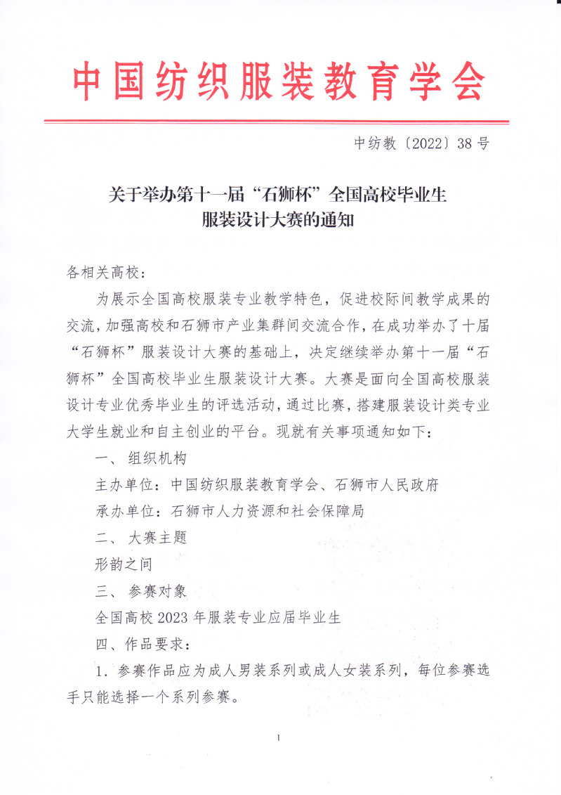 关于举办第十一届“石狮杯”全国高校毕业生服装设计大赛的通知