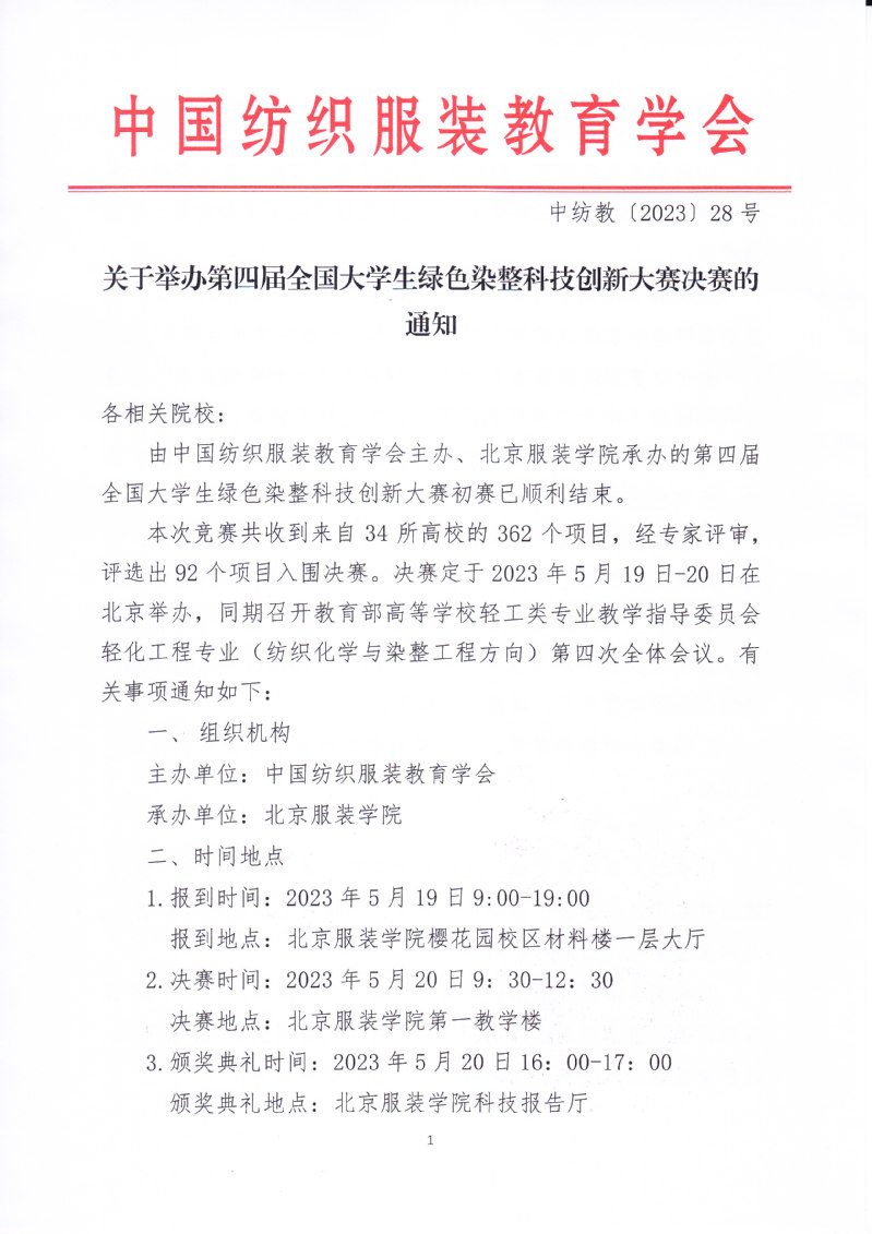 关于举办第四届全国大学生绿色染整科技创新大赛决赛的通知