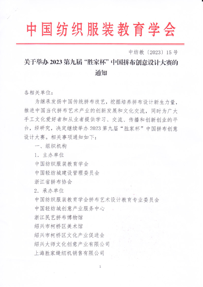 关于举办2023第九届“胜家杯”中国拼布创意设计大赛的通知