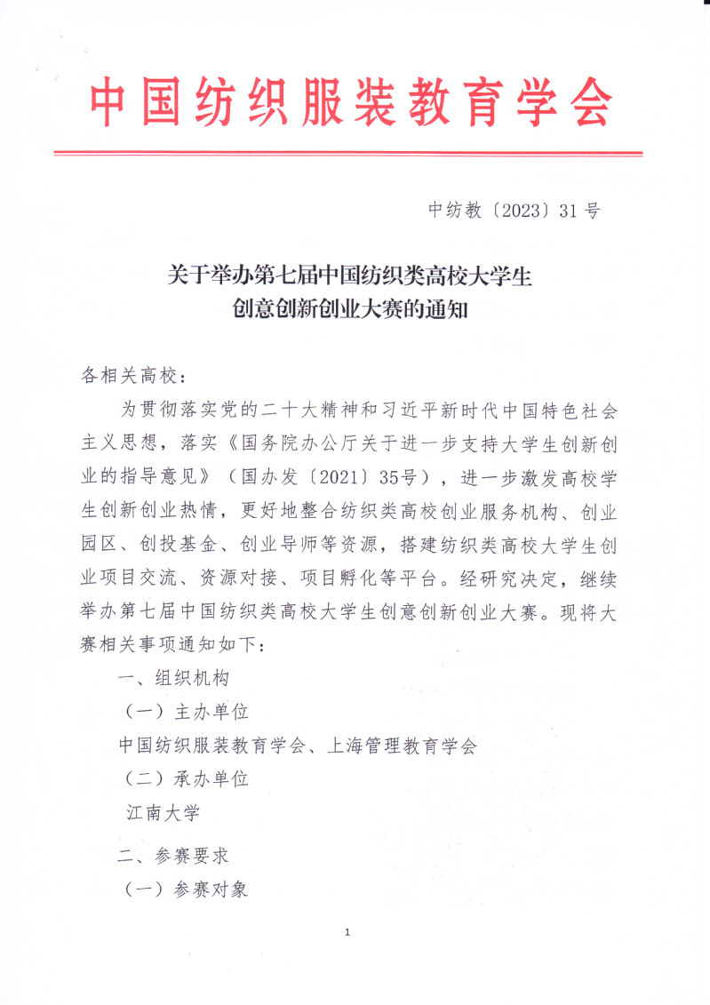 关于举办第七届中国纺织类高校大学生创意创新创业大赛的通知