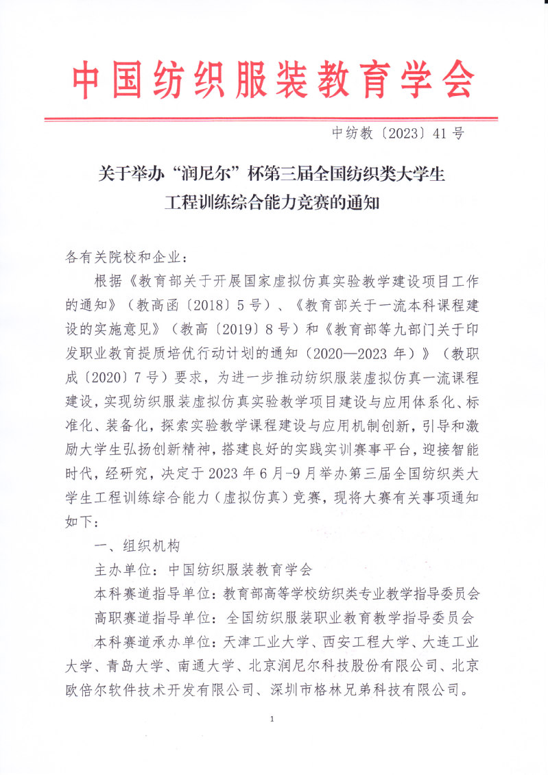 关于举办“润尼尔”杯第三届全国纺织类大学生工程训练综合能力竞赛的通知