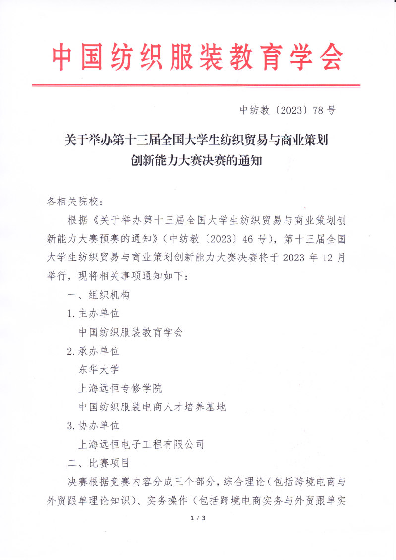 关于举办第十三届全国大学生纺织贸易与商业策划创新能力大赛决赛的通知
