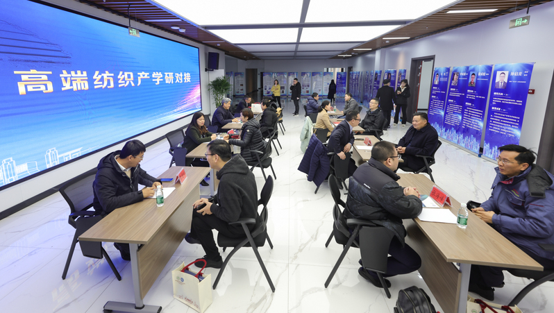 仪式后,与会人员一同参观了研究院展厅以及高端纺织相关研究成果。纺织企业代表与纺织服装学院专家教授进行产学研合作洽谈。12个概念验证项目进行了路演。