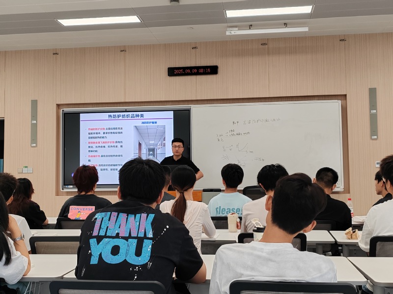 学院纺织工程系单浩如教授以“高温防护纤维及纺织品”章节内容进行示范教学。单老师从高温防护纤维及纺织品的定义和分类出发,以深入浅出的方式引导学生理解其作用原理、设计思路与性能评价标准。结合我国当前高温防护纤维及纺织品产业的实际情况和面临的挑战,重点分析了近年来我国在耐高温纤维领域存在的“卡脖子”难题。本次示范课采用多媒体、产品实物与板书相结合的多位一体课堂教学模式,广泛援引工程应用实例,课程内容充实精彩,课程准备充分,价值导向鲜明,有效激发了学生的学习兴趣、主动思考能力和爱国情怀,增强使命感,致力于培育更多具有创新精神和实践能力的高素质人才。