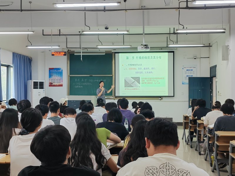非织造材料与工程系主任任煜教授围绕《纺织纤维的细度及其分布》课程内容,呈现了一堂内容丰富、形式新颖、思政融合的高质量示范课。任煜教授紧扣“纤维细度及其分布”教学内容,从“纤维细度表征方法”“纤维细度测量方法”“细度不匀指标”及“纤维细度对纤维、纱线及织物的影响”等四个方面展开讲解,课程设计层层递进,内容逻辑清晰,理论与实践结合紧密,充分体现了专业课程的深度与广度。在教学方法上,任教授采用“案例分析—小组讨论—线上线下互动”相结合的混合式教学模式,通过典型案例引导学生深入思考,激发高阶思维能力;小组讨论促进学生协作与表达,提升课堂参与感;线上实时答题与即时反馈机制有效诊断学情,增强教学针对性与实效性,形成“教—学—评”一体化的良性互动。同时,任教授将“自主创新”“工匠精神”“安全规范”与“职业责任”等思政元素有机融入专业知识传授之中,实现课程思政与专业教育的深度融合,真正做到“润物细无声”。通过课堂引导,学生不仅掌握了专业知识,更在潜移默化中提升了职业素养与价值认同。