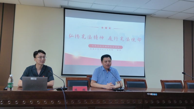 讲座中,陈程副庭长立足宪法基础知识体系,从“宪法的基础知识”、“习近平宪法思想”、“2018年宪法修正案”、“宪法的运行实施”四个方面展开系统阐释。通过梳理宪法发展历程,重点解读了新时代宪法修改对完善国家治理体系、保障人民权益的重大突破。结合十个典型案例,深入剖析了公民权利义务、校园安全防护、网络行为规范等与大学生密切相关的法律议题。