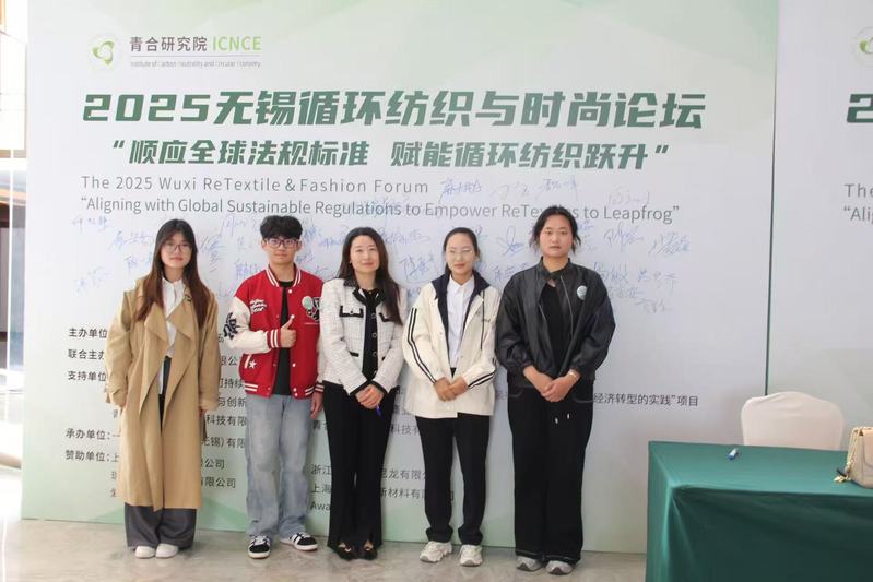 2025年10月23日至24日,由青合循环经济与碳中和研究院、厦门海峡可持续产业联合会和上海金司南金融研究院联合主办的“2025无锡循环纺织与时尚论坛”在太湖之滨启幕。纺织服装学院《炽焰余晖·织梦新生》学生科创团队受邀参会。这场聚焦纺织产业可持续发展的国际盛会,吸引了来自丹麦、荷兰等欧洲纺织强国以及中东地区的产业代表,与国内龙头企业、知名高校共商循环经济转型路径。