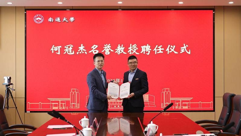 何冠杰对受聘我校名誉教授表示非常荣幸。他表示,将努力搭建中英学术界的坚实桥梁,在科研上促进南通大学和UCL在绿色储能、新型材料、柔性电子等交叉领域开展联合攻关;在人才培养上开展博士生、博士后及青年学者的互访与联合指导。何冠杰是英国伦敦大学学院教授,博士生导师,2023年入选英国材料、矿物和采矿学会会士,2024年入选英国皇家化学学会会士,2025年获得哈里森-梅尔多拉早期职业纪念奖章。他专注于水系电化学能源存储与转换材料及器件领域,以通讯作者在国际权威学术期刊发表SCI论文100余篇,被引16000余次,H指数75;主持超过300万镑的科研项目,包括欧洲研究理事会科研启动基金(ERC Starting Grants)等;担任Battery Energy期刊副主编、Green Energy Environ.、Sci. China Mater.、Nano Res. Energy、Energy Environ. Mater.、Adv. Powder Mater.、J. Met., Mater. Miner.期刊(青年)编委。